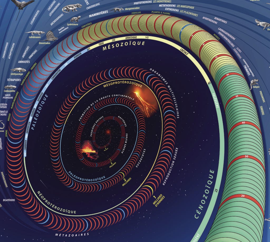 A beautiful nested helix plot that manages to display information on a scale from decades to billions of years